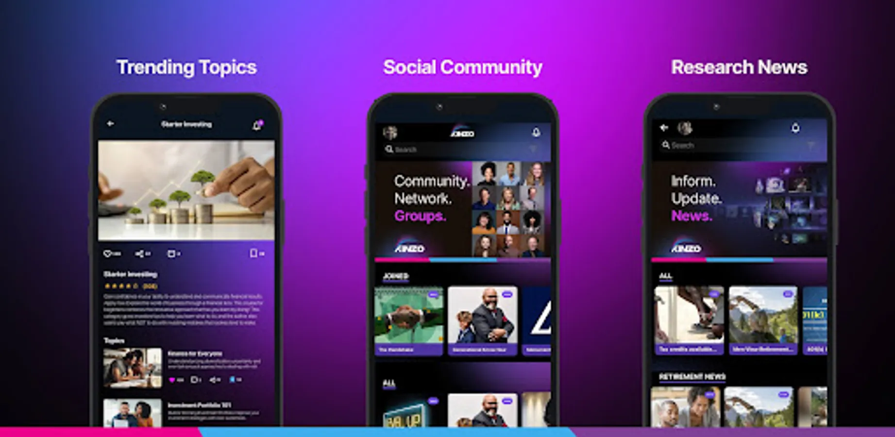 The Kinzo app is rich with features to help you get started quickly and easily so you can begin building future wealth. In addition to all of the videos and educational material, we’ve included Topics and News sections that give you up-to-date information and analysis on the latest trends in the stock market, so you are always up-to-date about what's happening in the financial world to make informed investment decisions.