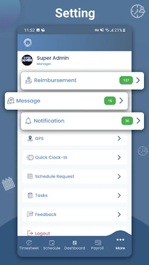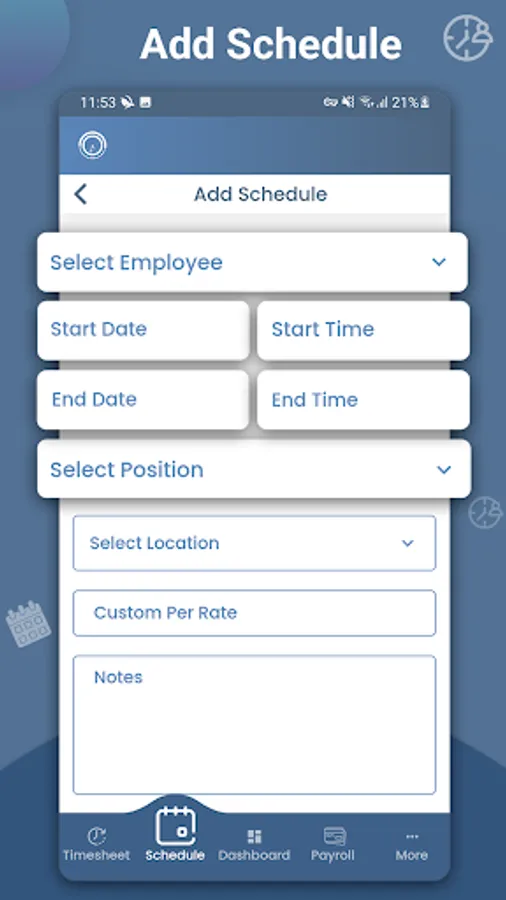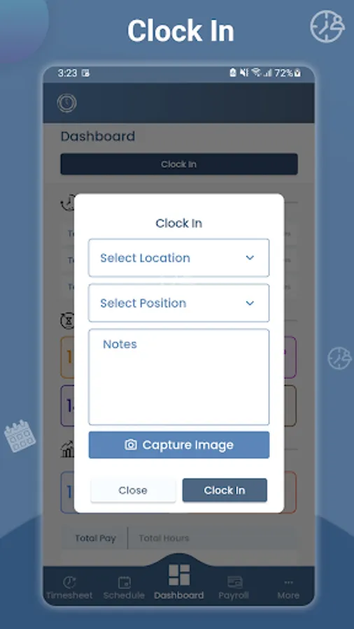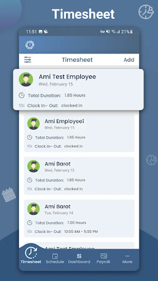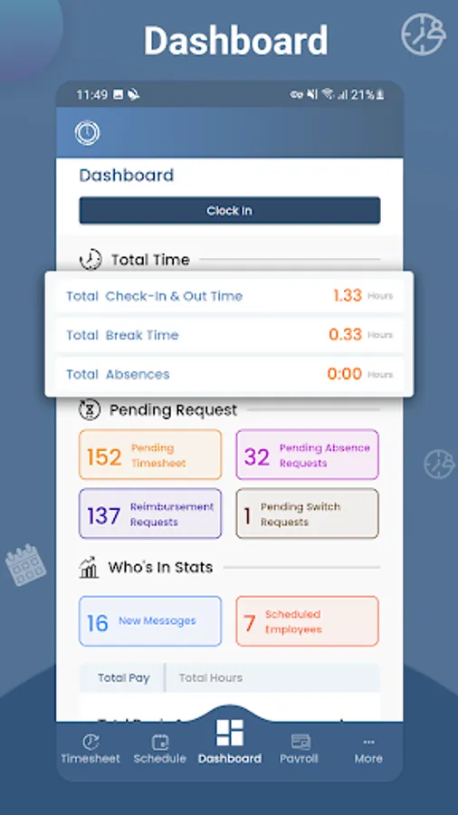 • Employees can clock in and out, add time sheet changes, and view their work schedule on-the-go.