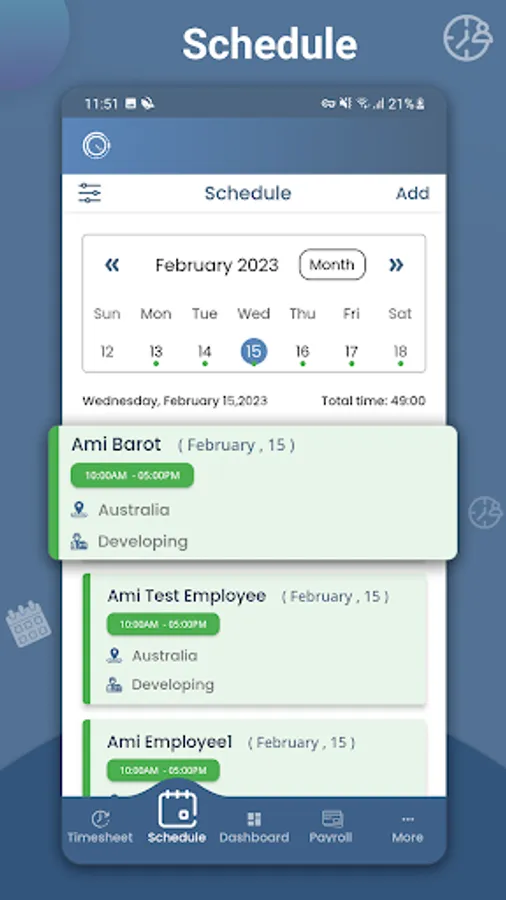 • Add, delete and switch employee work schedules