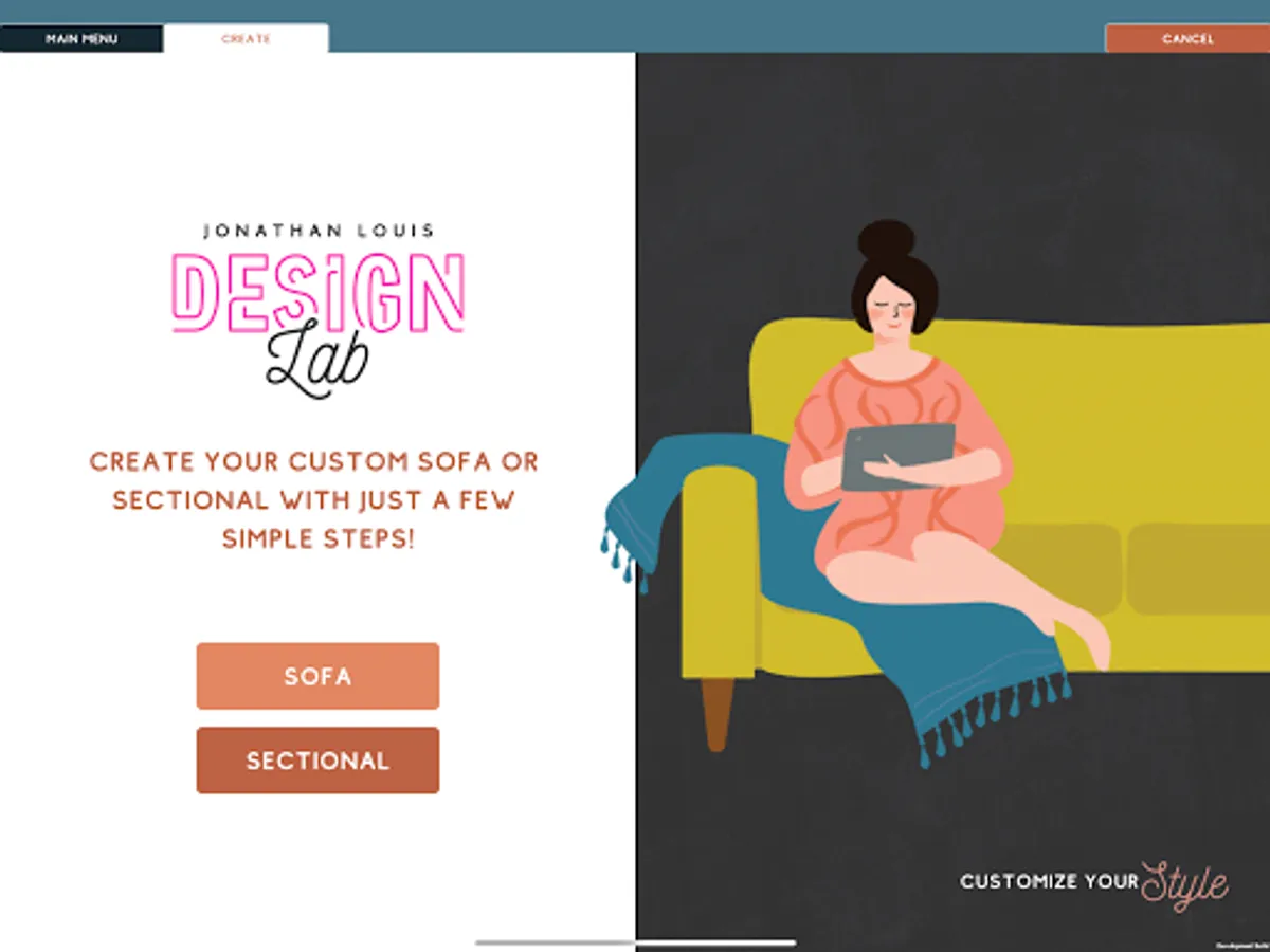 Forget cookie cutter design. Create your stylish custom sofa or sectional in a few simple steps with the Jonathan Louis Design Lab™ App! From arm styles to leg finishes to seating comfort, the specs are up to you – and your options are unlimited. Woot!