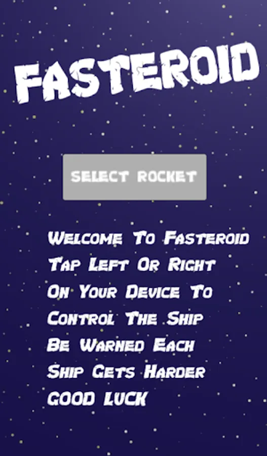 Fasteroid, a fast paced space game where you control 1 of 6 spaceship's. The aim of the game is to dodge as many asteroids as you can to get a high score!.