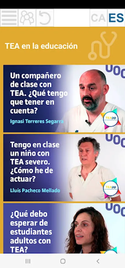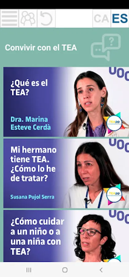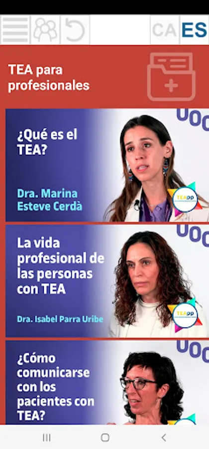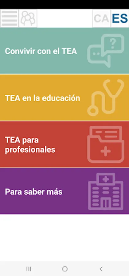 TEAapp is an application that helps the person with ASD (and/or relatives) to manage communicative situations with health professionals. The main objective is to overcome the communicative problems in certain situations of the disease diagnosis process. From the initial phases to situations typical of the development of the treatment, such as the delivery of a medical report or the performance of a medical test. The value proposition of TEAapp, and of these materials, lies in valuing the importance of language when talking about health and helping to empower the main agents to successfully communicate with the health professional and improve the support process in treatment involving this type of developmental disorder.