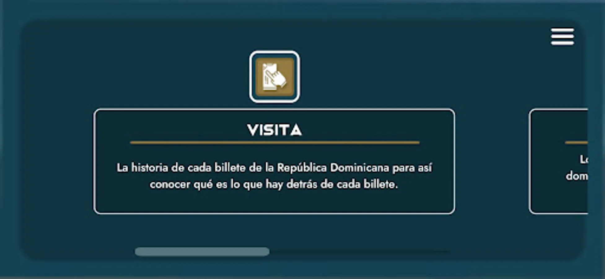 This app is a door to the past of our country, where through something as everyday as "bills" you will learn fractions of Dominican history represented in 3D models. As a user of this app you can enjoy an enriching experience of knowledge with your own hands.