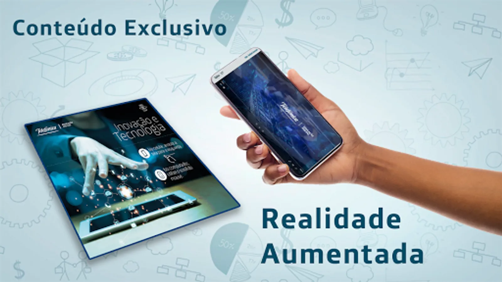 Telefônica Educação Digital application where you can access Augmented Reality, pointing your device's camera at the cover of the virtual folder.