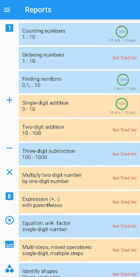 Learning progress tracked with details reports will help users to review and find the right courses to improve math skills. Solutions guided steps by step will ensure everyone find easily to understand.