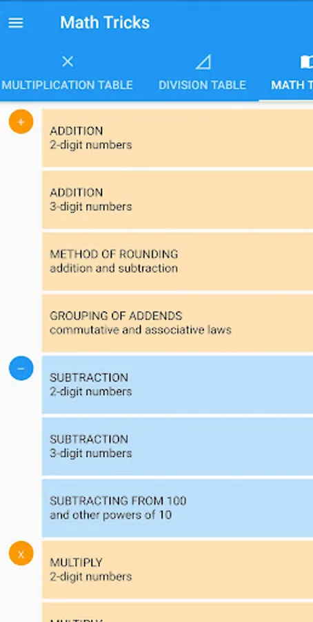 Easy math also provides Math Tricks with variety of interesting tricks to help speed up calculating skills.