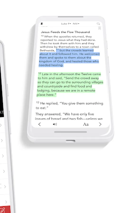 * Free Audio Bible: Click listen and you are instantly listening to the daily devotional plan. You can also look up any passage you want, the listen tab is in the bottom right hand corner at all times.