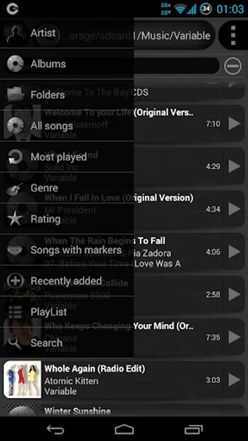 * Categorize songs by artist,album of artist,albums,genres,folders,all songs,most played,rating,recently added.