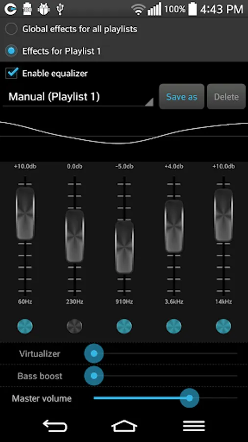 * Separate equalizer and effects setting for each playlist - or can be shared between them.