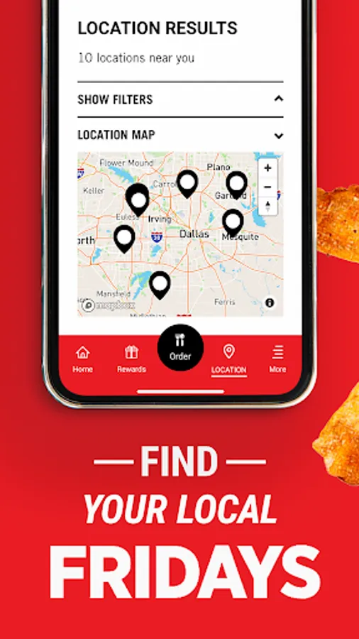 Get the app now to order ahead, find a Fridays for a happy hour near you, and join Fridays Rewards to start earning points for free appetizers, whiskey-glazed burgers, and more!