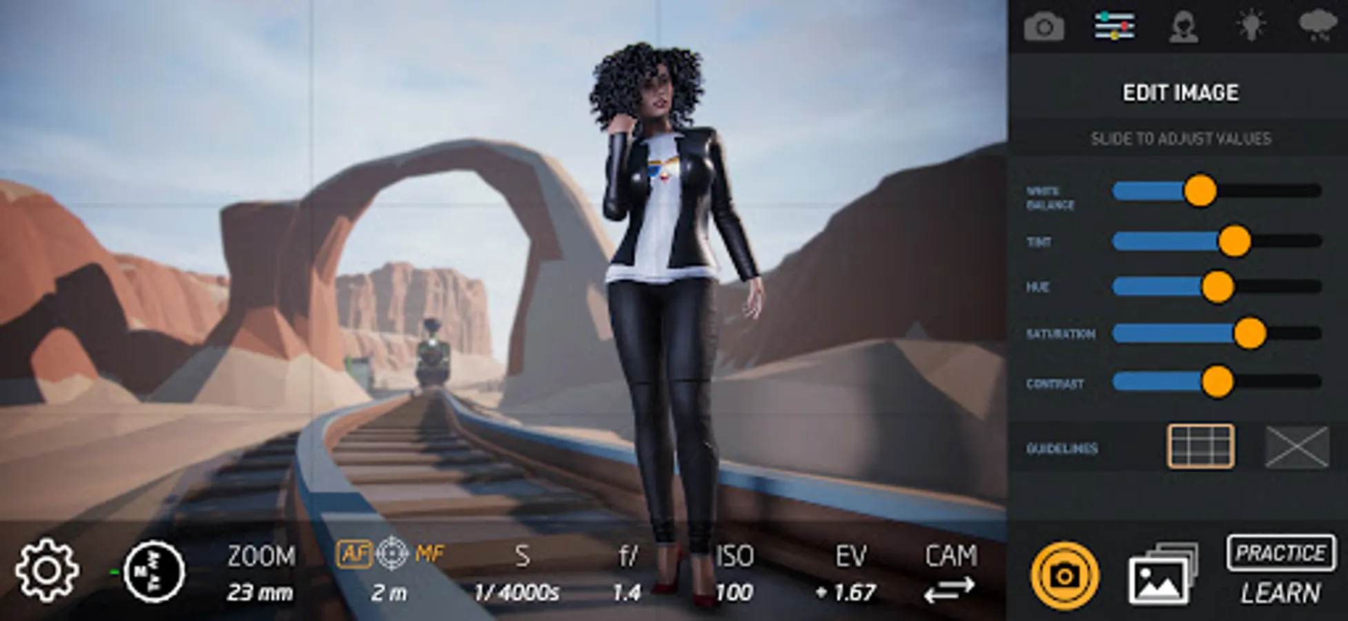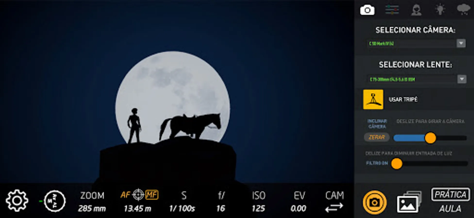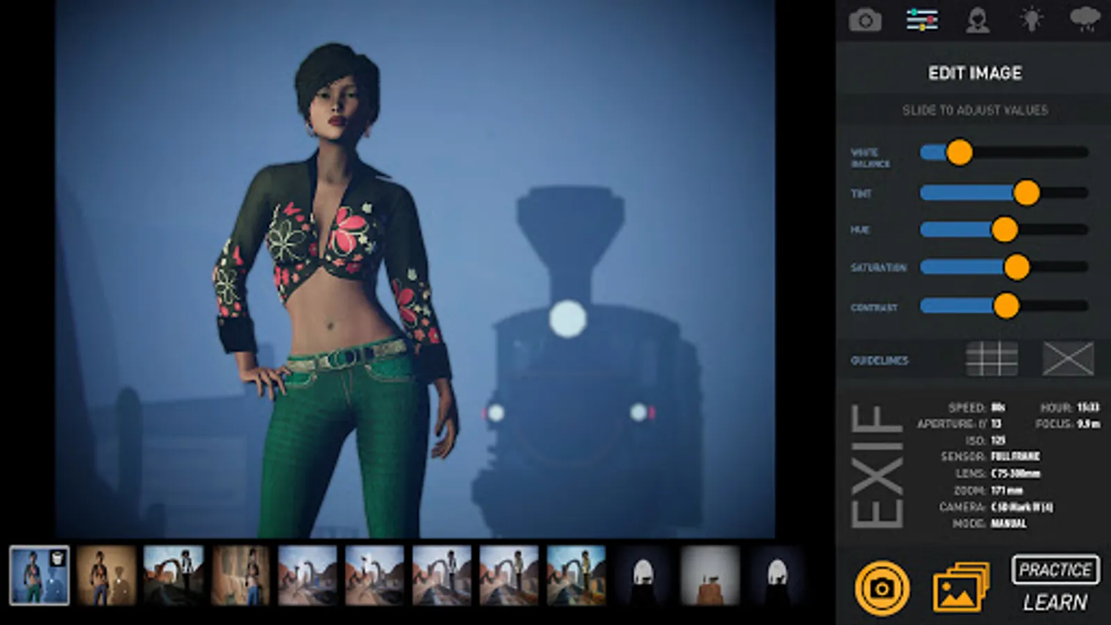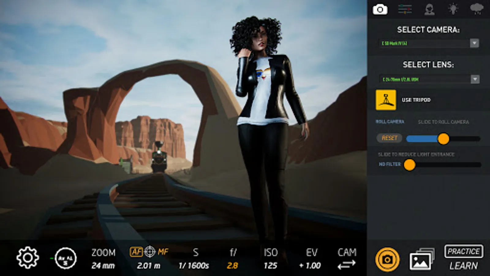 The features of the simulator will help you practice a ton of photography techniques such as lens and cameras characteristics, composition, framing, natural light photography, off camera flash, outdoors and indoor photography, landscape, portraits, creative lighting and much more.