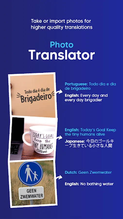 With our Translation app, you can quickly and easily translate signs, menus, and other text in any language. Our high-ranked keywords include "translate photos", "picture translator", "multilingual", "travel translator", and "translate documents".