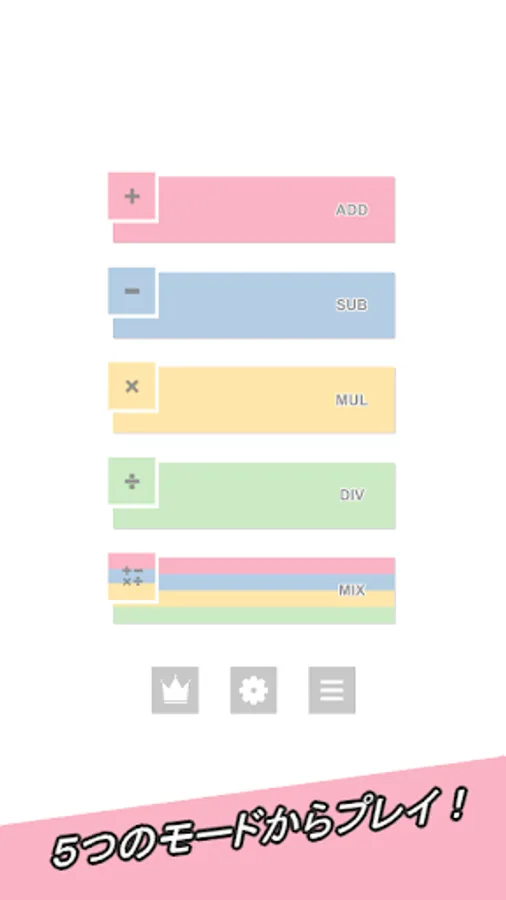 You can play the modes of addition, subtraction, multiplication, division, and mix.