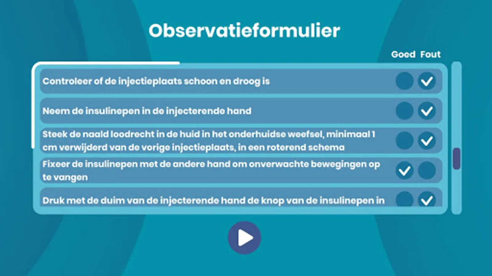 You will receive immediate feedback while practicing. You immediately know what to do and what to pay attention to. We regularly add new actions to CareUp, almost all of which are accredited by the V&VN.
