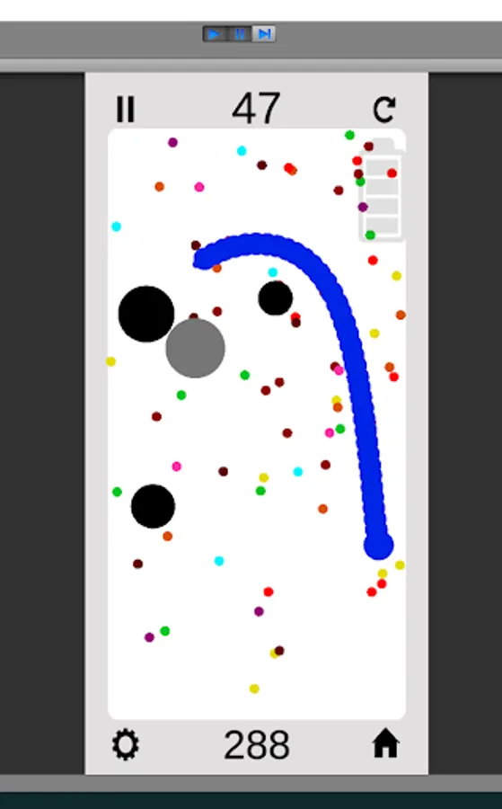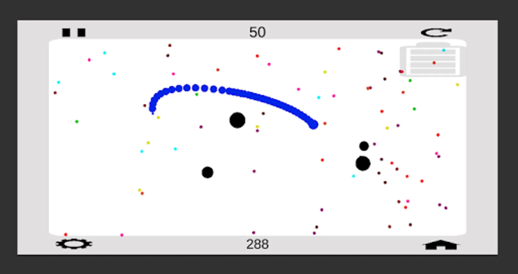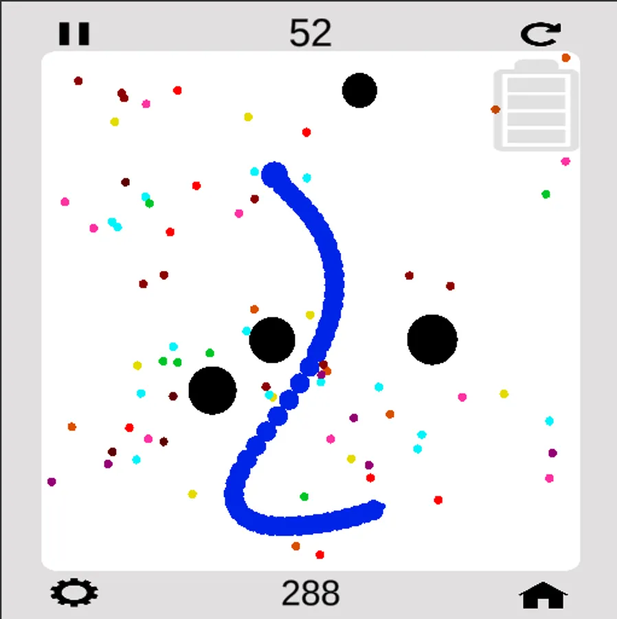 Grow the blue snake by eating colored balls and stay away from the black balls.