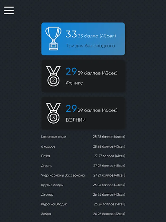Participants go through 7 stages on a specially designed platform. Each online game consists of 30 questions on different topics. The host is broadcast in the application - the teams will have only 70 seconds to discuss the issue. Teams earn points and are included in the overall leaderboard.