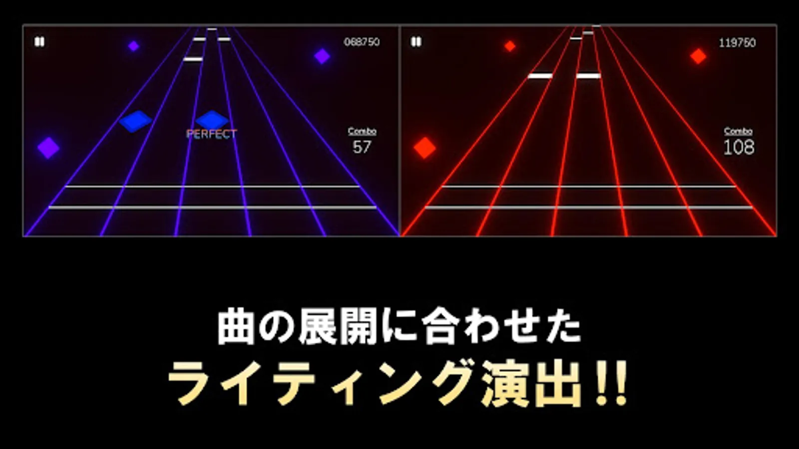This is a rhythm game in which the player taps the notes flowing in five lanes in time with the rhythm of the game.