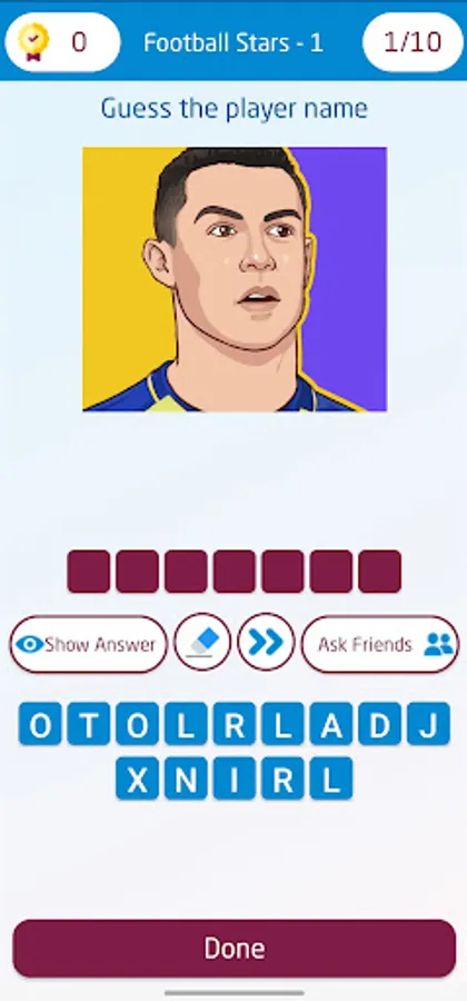 Football Players Challenge 2023 is a challenge to identify football players in major leagues and national teams through cartoonish images of the players.