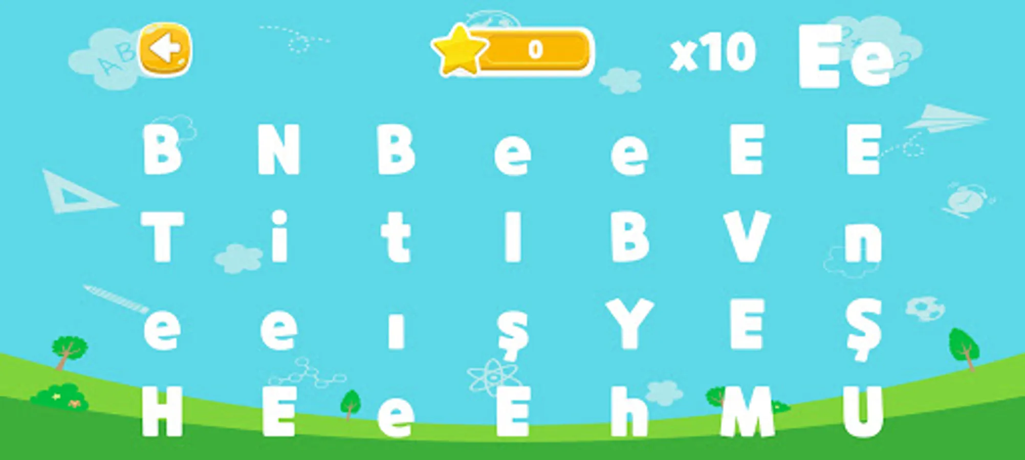 Learning game for preschool, primary school 1st and 2nd grade students with vocalized Turkish letters and numbers.