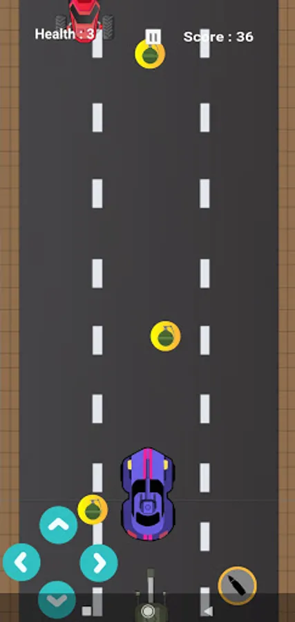 Destroy the enemy cars by firing at them. Colliding with the enemy reduces your health, whereas with the coins, increases your score. Njoy your play