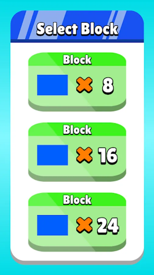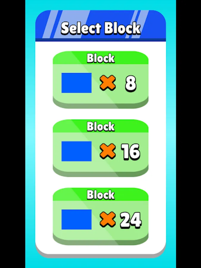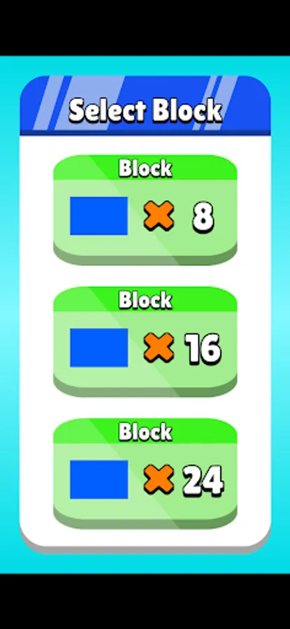You can choose from 8, 16, or 24 blocks, and there are stages with different block shapes and movement speeds.