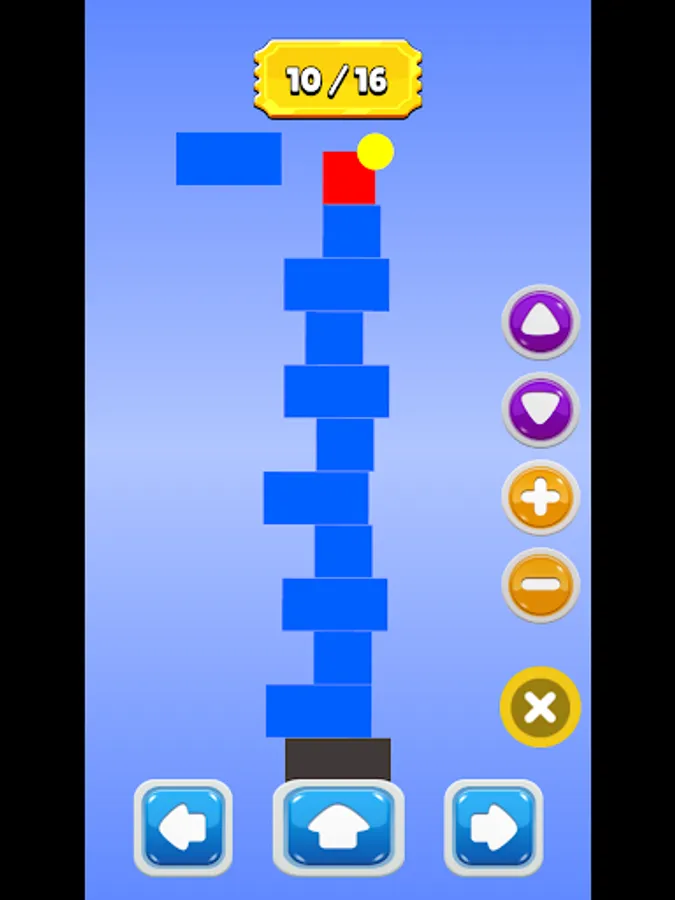 Blocks move from the side, so you jump at the right time and stack blocks.