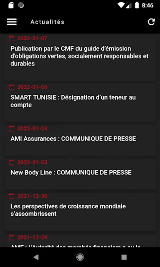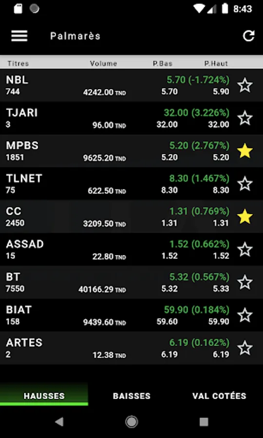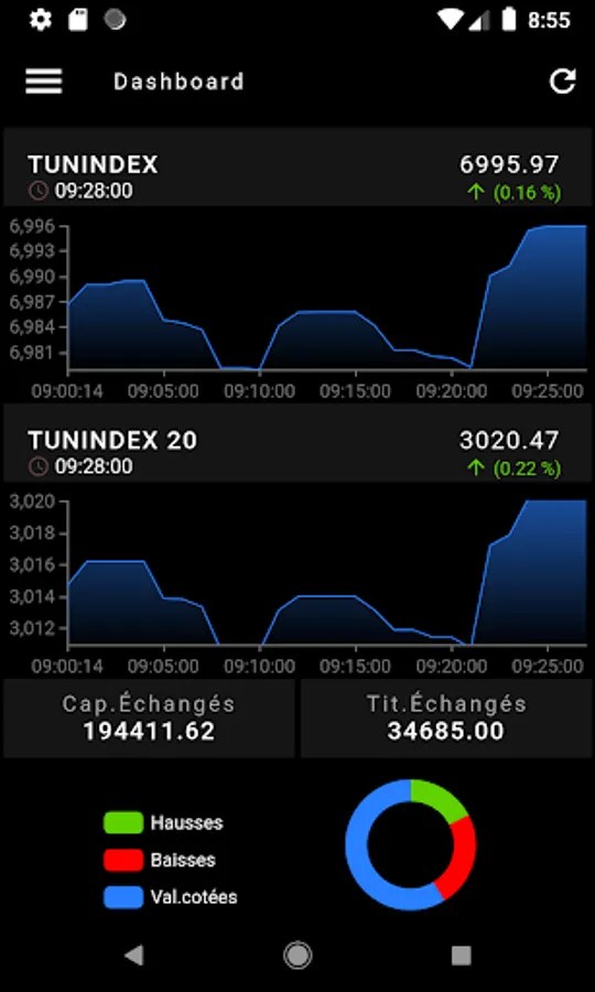 - Visualization of indices and market quotations of the Tunis Stock Exchange.