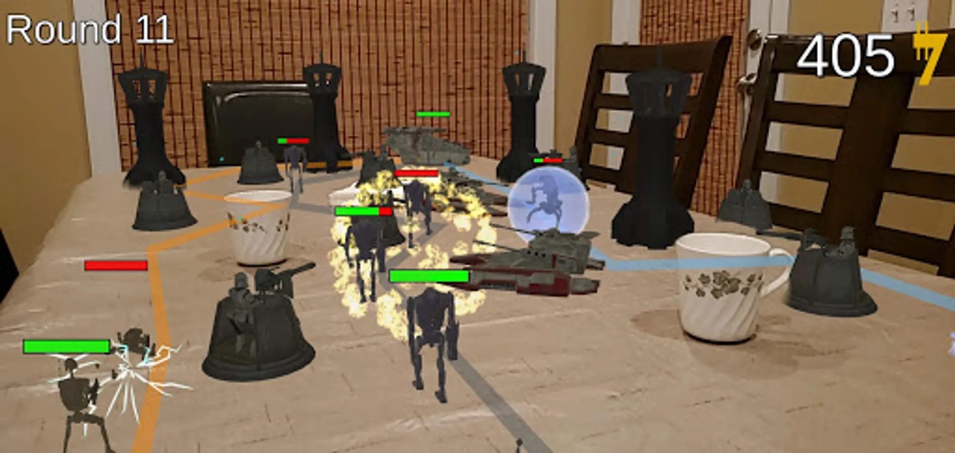 Prepare your clones for war against the droid army! Using your phone's camera and augmented reality, design a battlefield and fight upon it as you create clone defenses to protect your transport vehicle from waves of droids. Defeating enemies will earn you credits that you can then spend on new troops. How far will you go in endless mode?