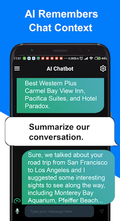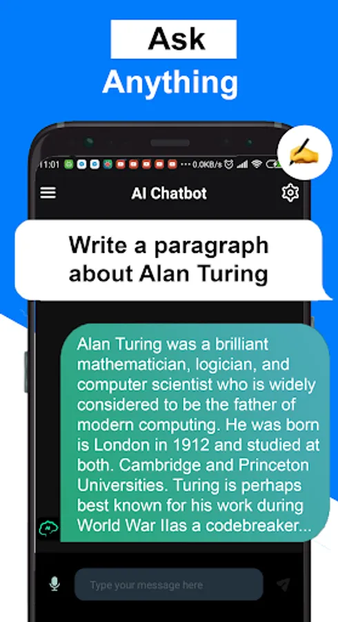 Utilizing advanced AI and natural language processing, it swiftly grasps your queries and delivers precise, valuable responses. Whether you need answers, suggestions, guidance, or simply a friendly chat, our app is here to help. Powered by continuous machine learning, it stays up-to-date and reliable. With its user-friendly interface, connecting with the chatbot has never been easier.