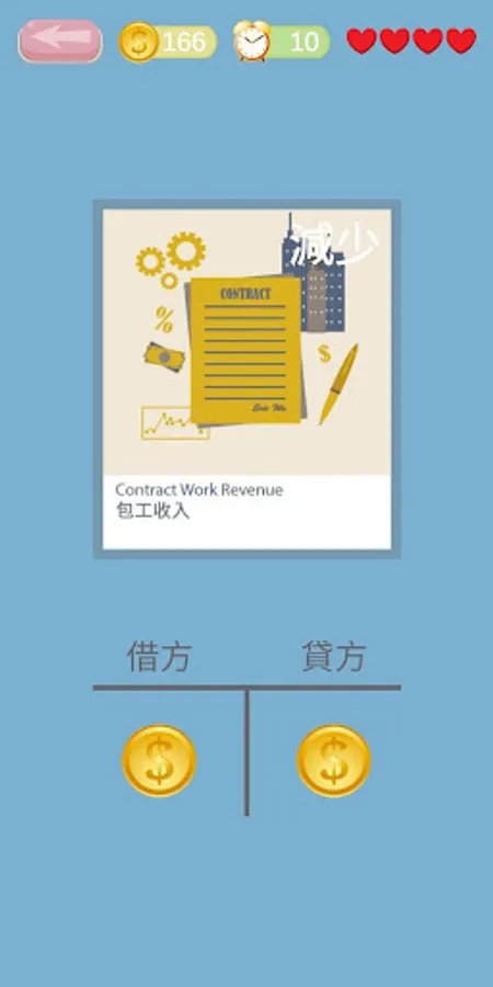 借貸法則:練習分辦會計項目於增加或減少時,應記於借方或貸方。