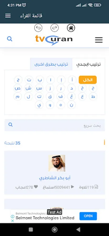 List of Holy Quran reciters - humbled recitations - rare recitations - children's recitations - legal recitation - today's remembrance