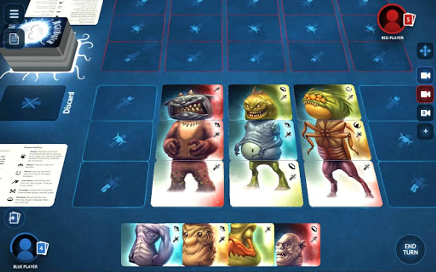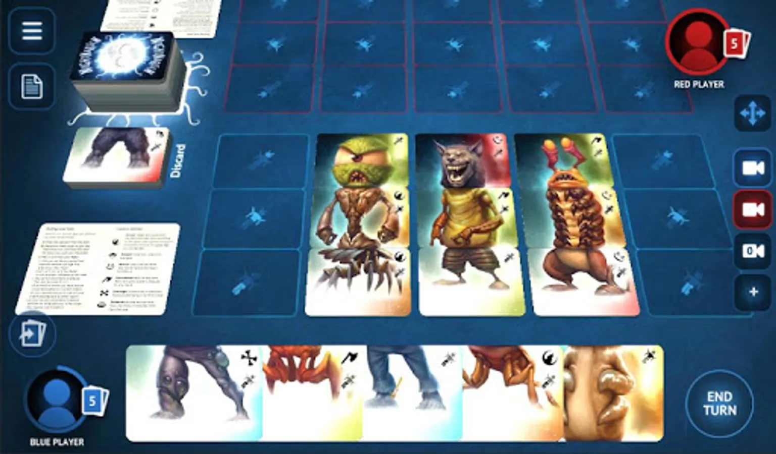 During your turn you will be taking, discarding, or playing cards representing body parts in order to assemble and activate creatures. To be activated, a monster must have a head, a torso, and legs.
