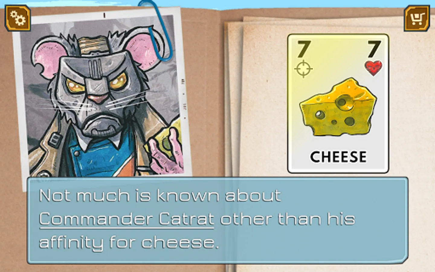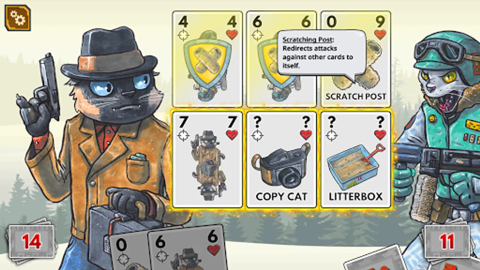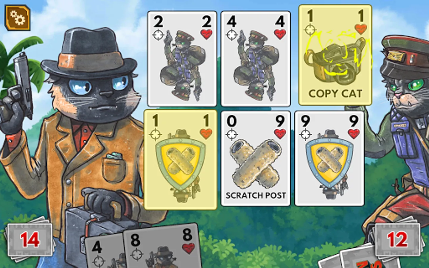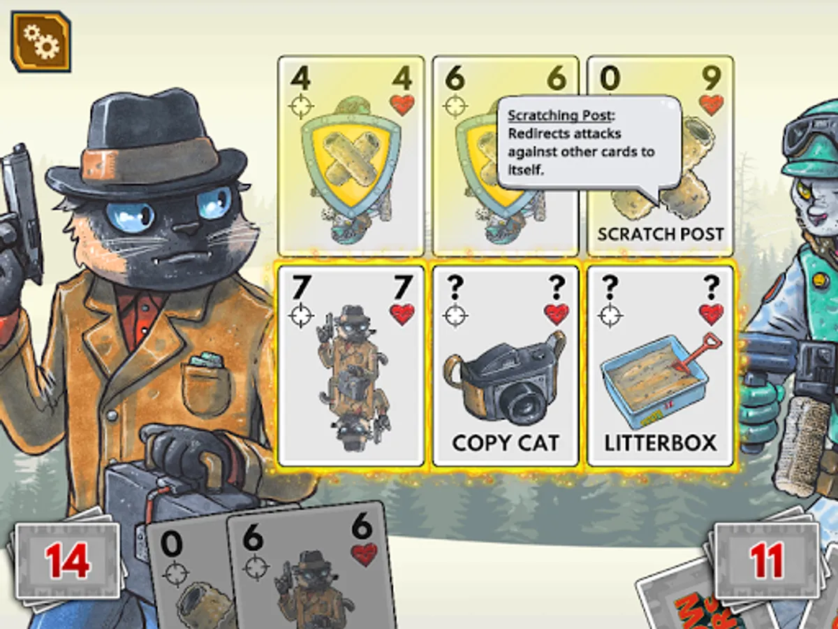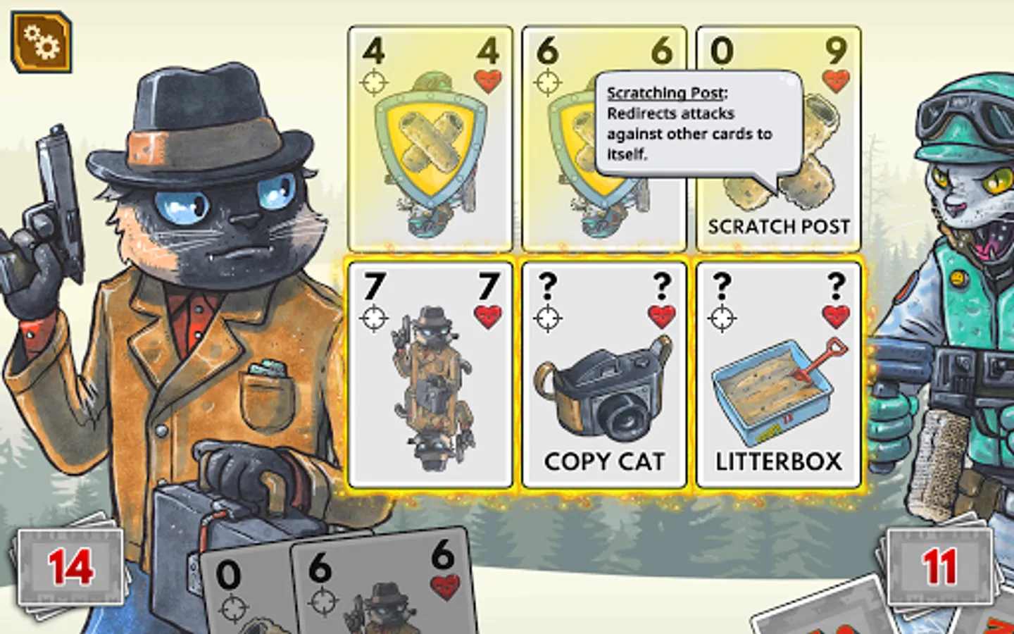 Meow Wars is a cat themed card battle game with easy to learn mechanics and charming hand drawn characters. Battle your way through each challenger to reach Commander Catrat and free Claw Mountain from his iron fisted grip. Each stage introduces a new cat and card ability in a compelling feline filled story. Challenge your friends to a PVP duel or test your might against a global audience.