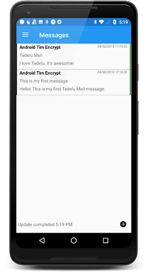 Tadelu Mail is an end-to-end encryption messaging solution for everyday conversation or where privacy and security is desired. Build with strong encryption algorithms on the sender-recipient end points, signature tagging of both the message and message thread, and no storage of keys on the server.