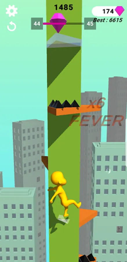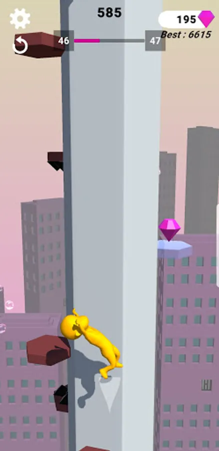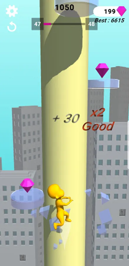 Jump to top using protrusions. Rotate platform to control jumping.However, Be careful about the traps and glass protrusions. And collect diamonds while jumping to the top.