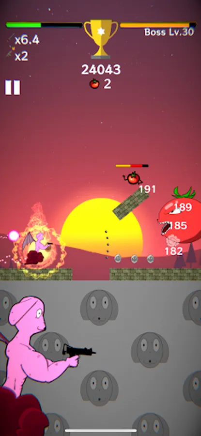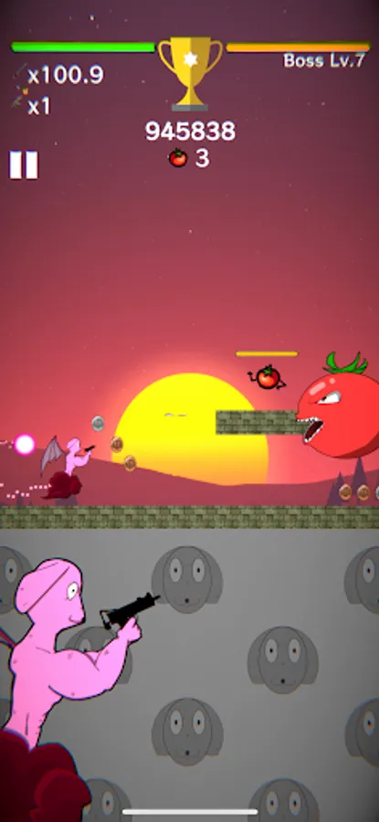 Aim for the final boss of level 100 by making full use of multiple weapons, fairy skills, and vegetable power! (You can enjoy Score Attack after level 100!)