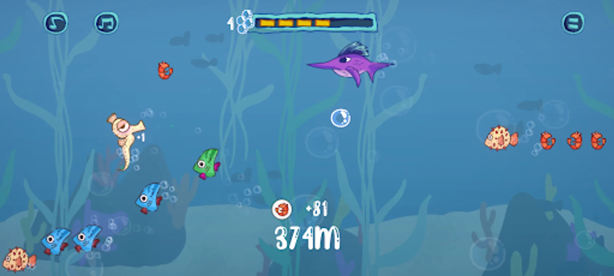 🦐 Eat shrimps to get more powers;