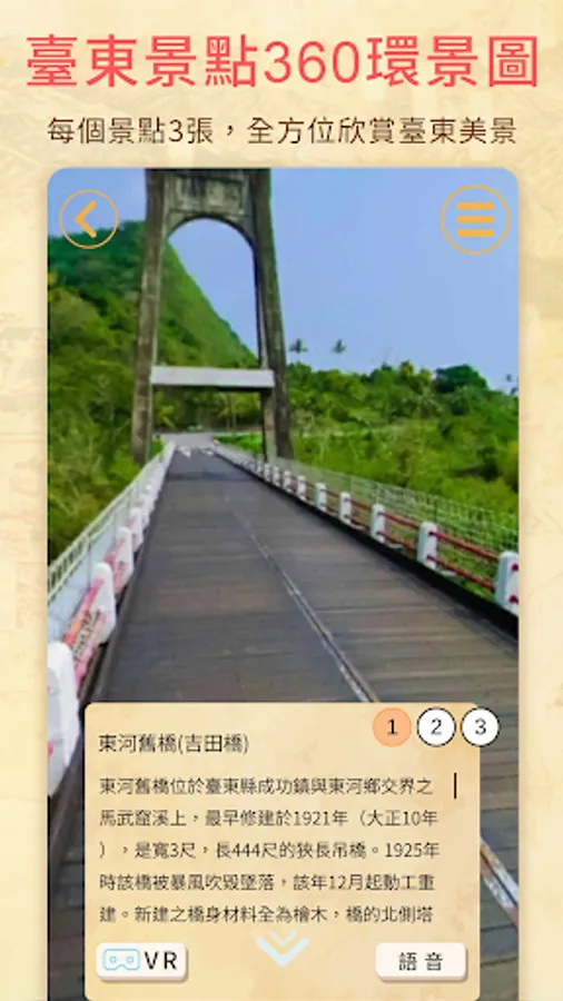 This function mainly serves the scenic area of "Taitung Minquan Li Japanese-style Building Dormitory Group". The camera function will be turned on. You can use the guide route in the screen to reach the target scenic spot and more intuitively identify the path direction you should go.