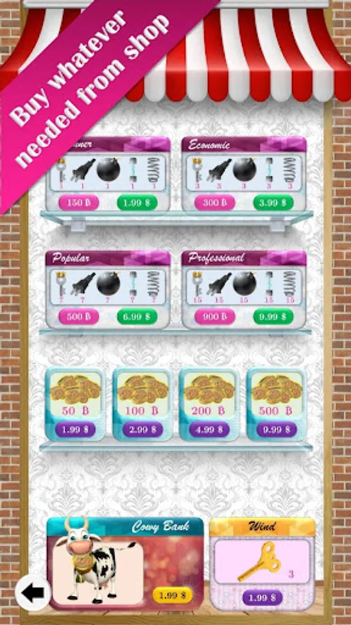 Roby can enter a room as many times as you want, but take care of its battery charge which should not finish before Roby comes out of house. Finally, Roby gets coins for the saved energy. Keep Roby's coins in a cowy bank and compete in coins count with other players around the world. Make sure Roby can come out of all the houses with just one battery charge.
