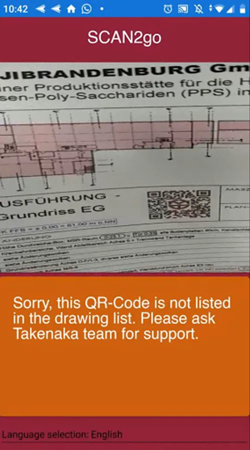 2. Missing File Msg: Sorry, this QR-Code is not listed in the drawing list. Please ask Takenaka team for support.