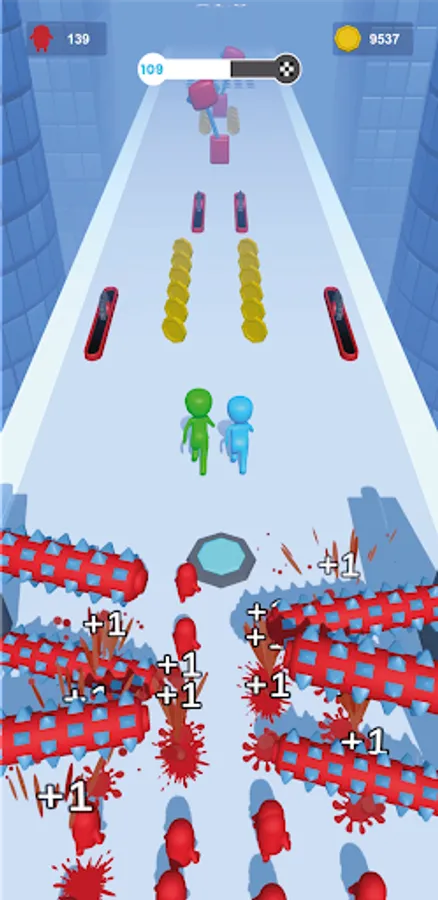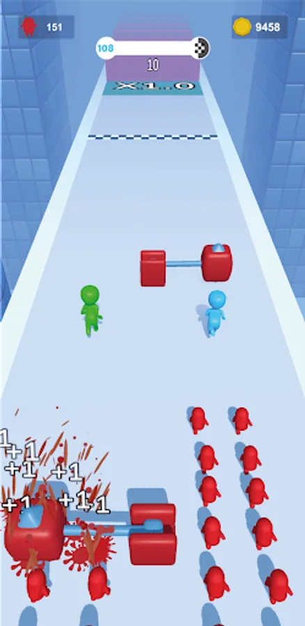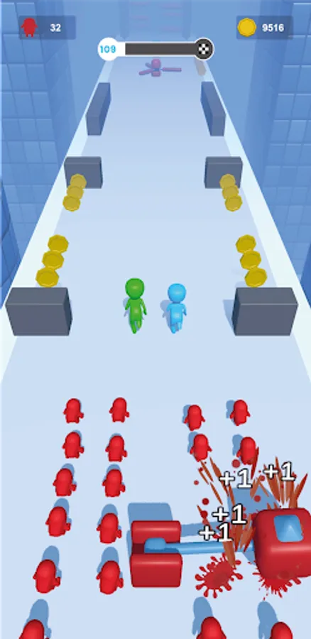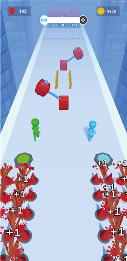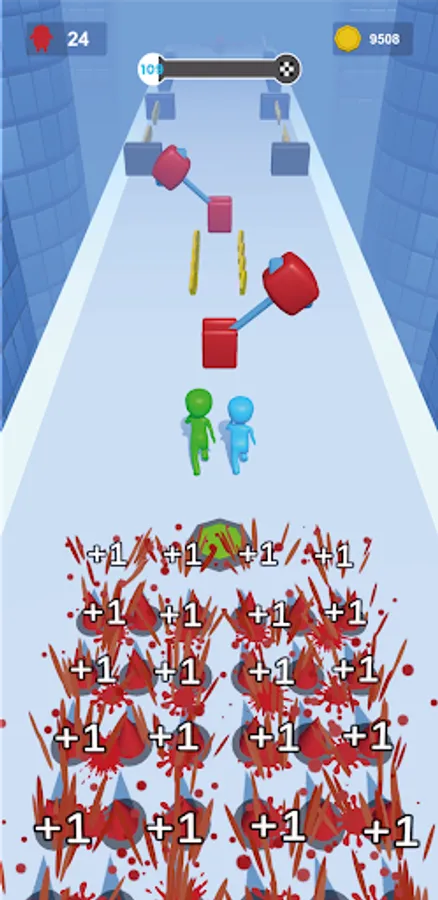 Take control of two characters and escape the mob while avoiding traps. Use the traps to eliminate the mob and reach the finish line.