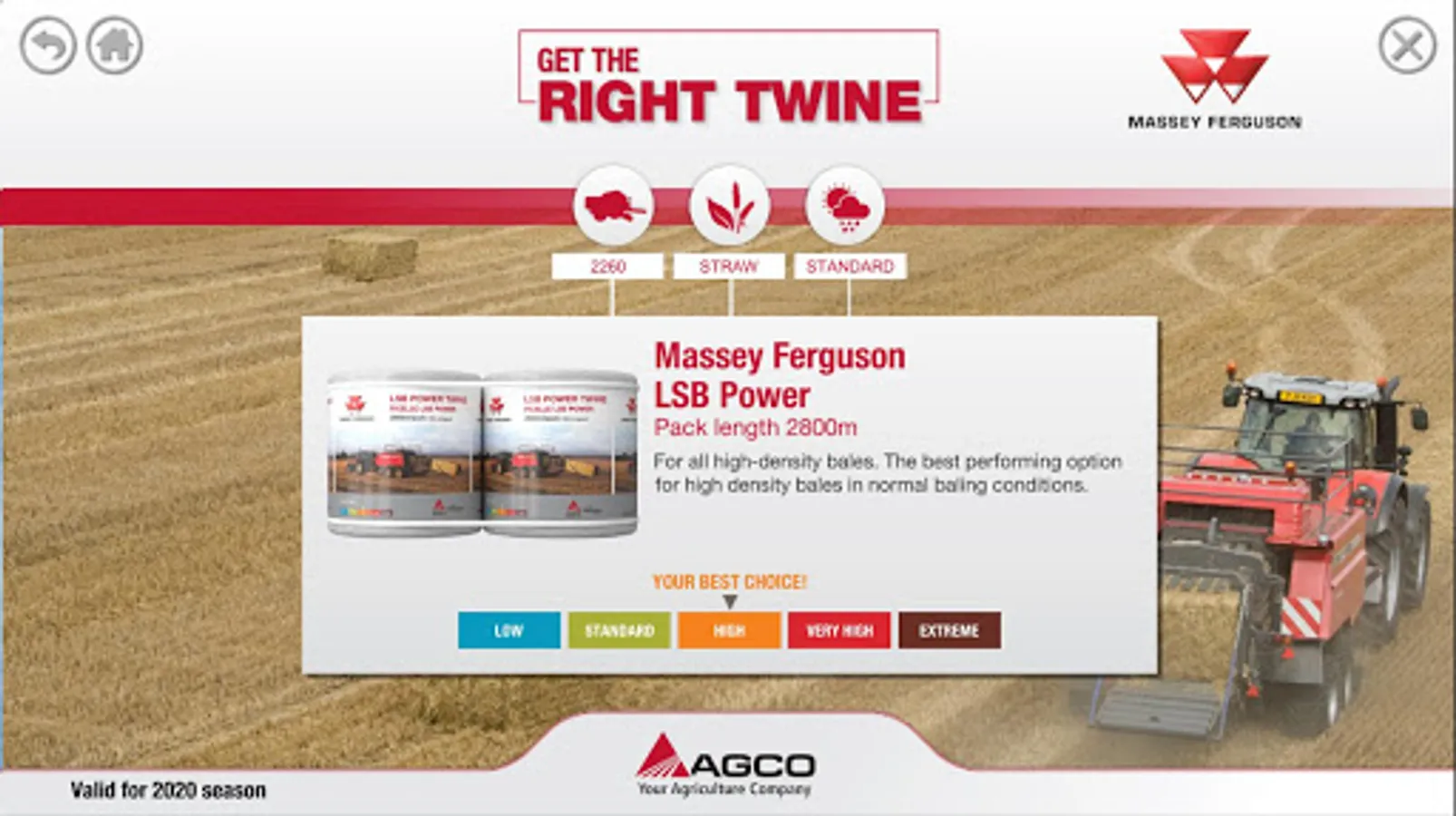 An interactive tool that helps you choose the right twine for your baling needs, and for maximizing your baling performance.