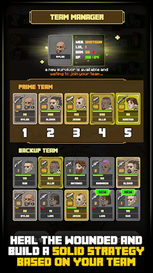 - 5V5 turn based RPG combat with team reaching 15 survivors.