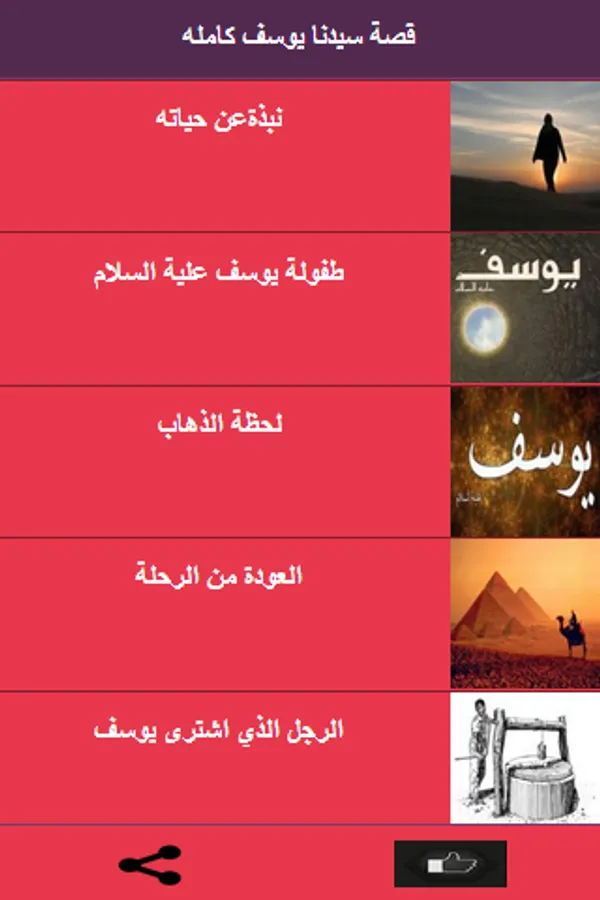 و في هذا التطبيق السهل لقد قمنا بجمع جميع تفاصيل قصه سيدنا يوسف عليه السلام لكي يقرائها الجميع.