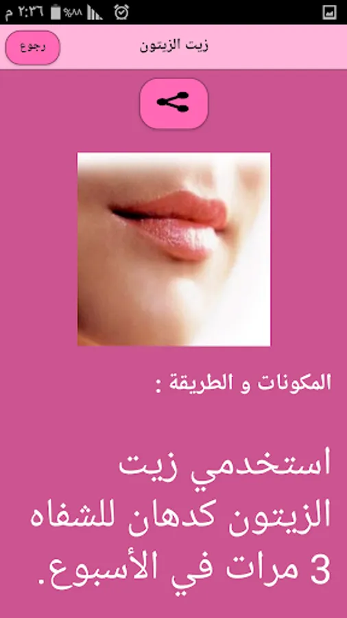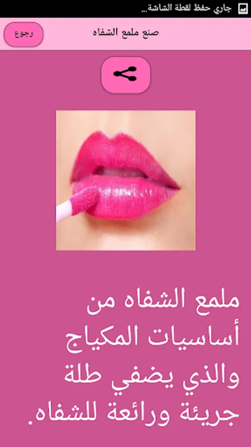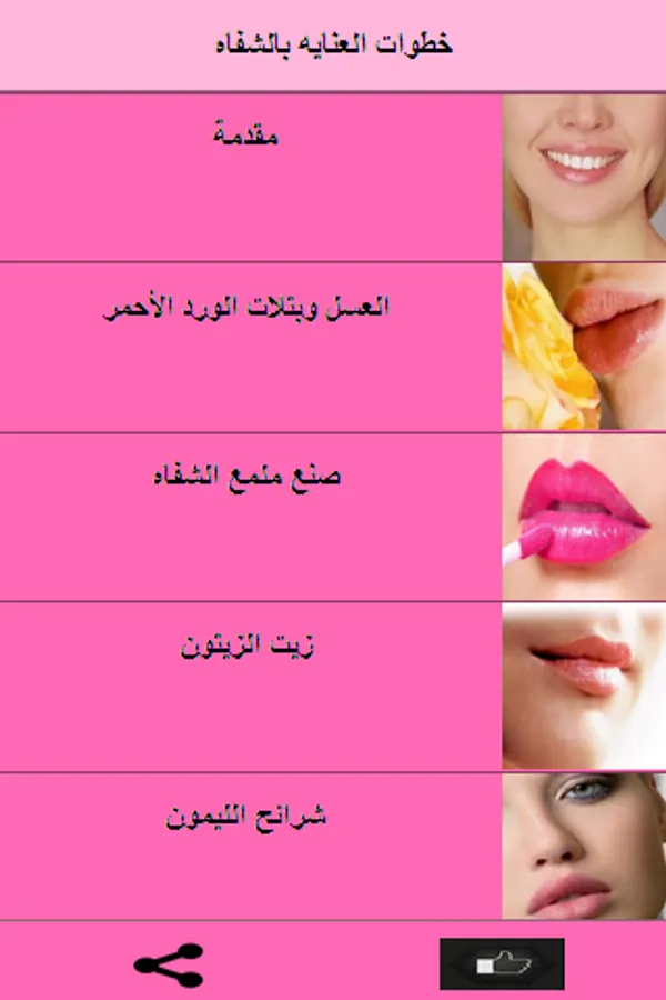لنساعد جميع الفتيات بعنايه الشفاه و جعلها لونها وردي لامع لقد قمنا بعمل تطبيق يحتوي كل ما تحتاج من خطوات تساعدك في هذه العمليه.
