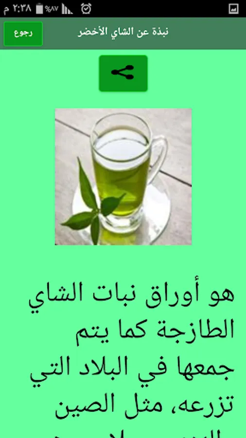 لكي نساعد جميع فئات الاعمار للقضاء على بعض المشاكل التي تواجها لقد قمنا بعمل تطبيق للشاي الاخضر و فوائده.