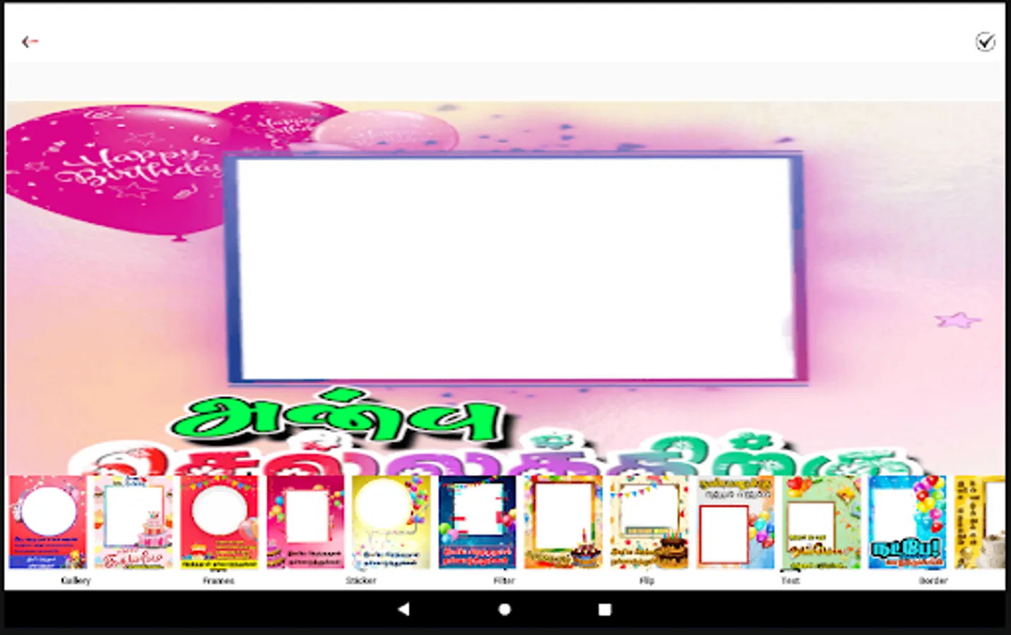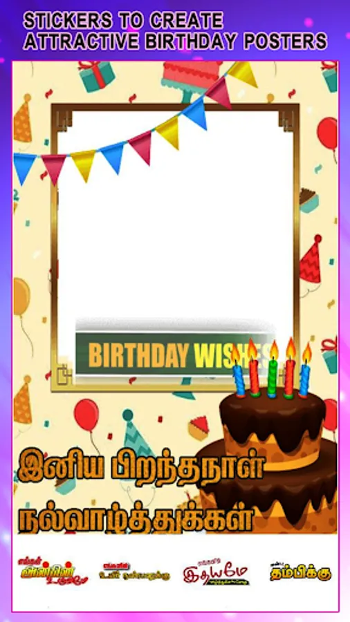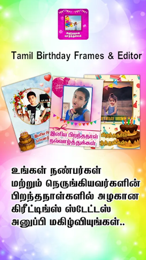 Tamil birthday Frames & Editor App lets you create beautiful Tamil Birthday Wishes Banner for your friends , relatives and loved ones.
