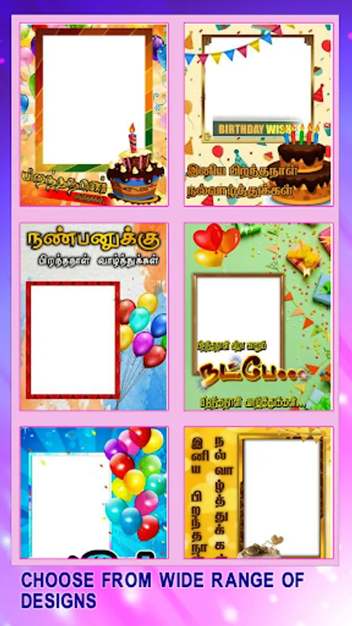 Make Piranthanal , Birthday wishes with the help of Tamil Birthday Frames Photo Editor பிறந்தநாள் வாழ்த்துக்கள் frames available in different designs and styles , Users can create customized greetings Banners using the Tools given in our app.