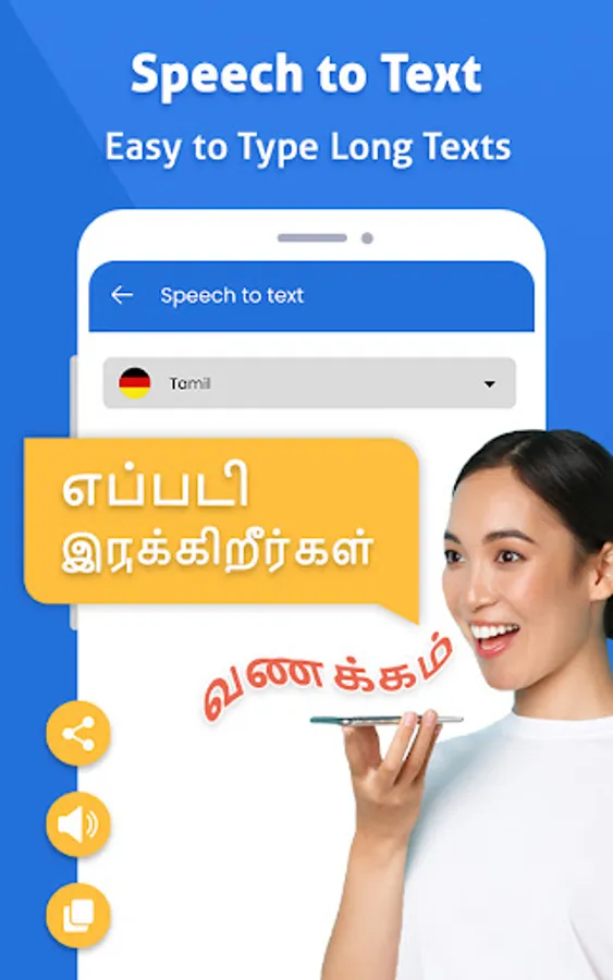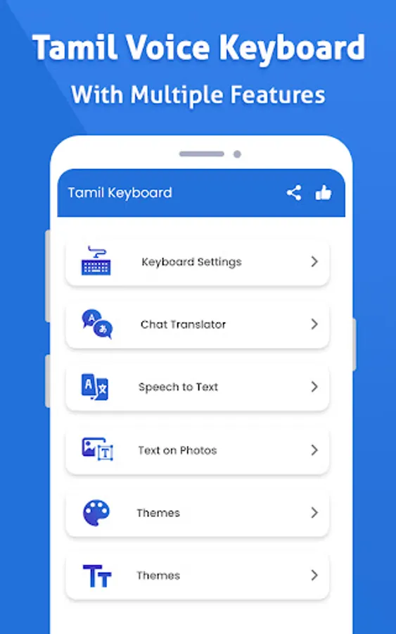 There are a lots of typing apps on store but Tamil voice keyboard with emojis for androids is the best input tools for typing Tamil that helps in typing keyboard new style fonts with different color and different attractive styles. Tamil speech to text keyboard is an easy type keyboard that also offers users to type Tamil in English. User can use Tamil voice typing keyboard can used as a manipulator that helps in writing Tamil language or improve typing using your android phone.