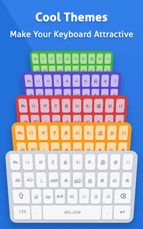 Typing Tamil language is a simply keyboard that have a variation of English letter keyboard layout with different keyboard themes and size user can change the keyboard layout and keyboard themes according to his choice.